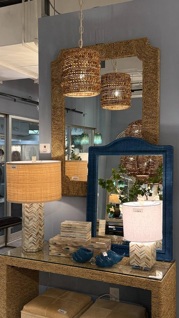 This season, these elements moved beyond boho into sculptural, chic form. Shaped into scalloped-edge coffee tables, tightly woven storage consoles, and sculptural mirror frames that felt refined rather than rustic.